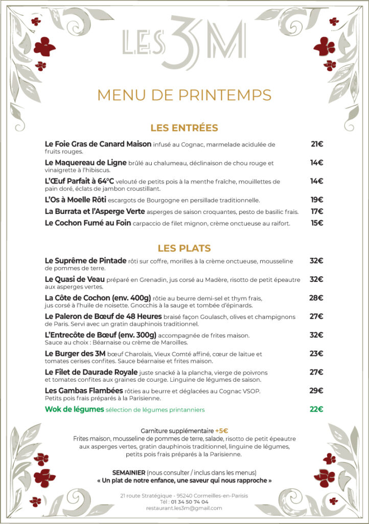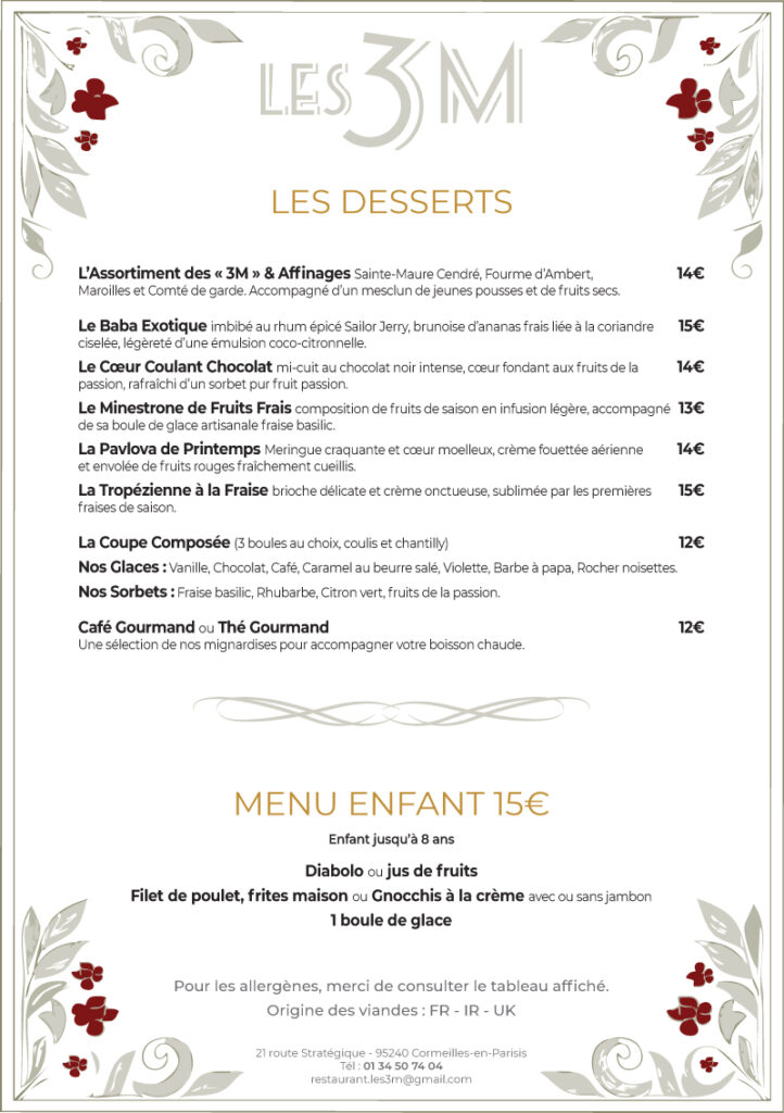 Découvrez notre menu